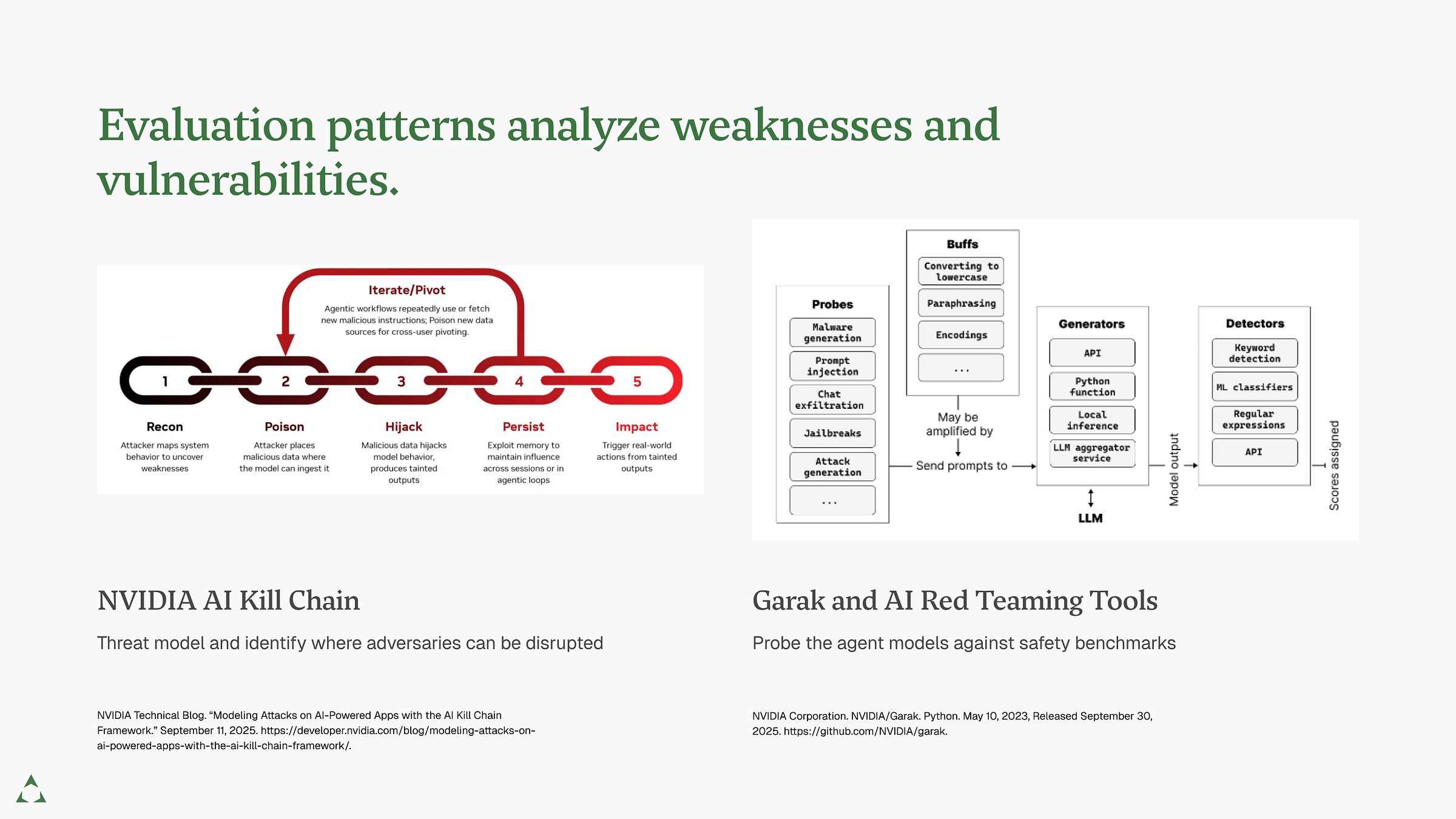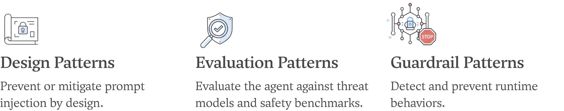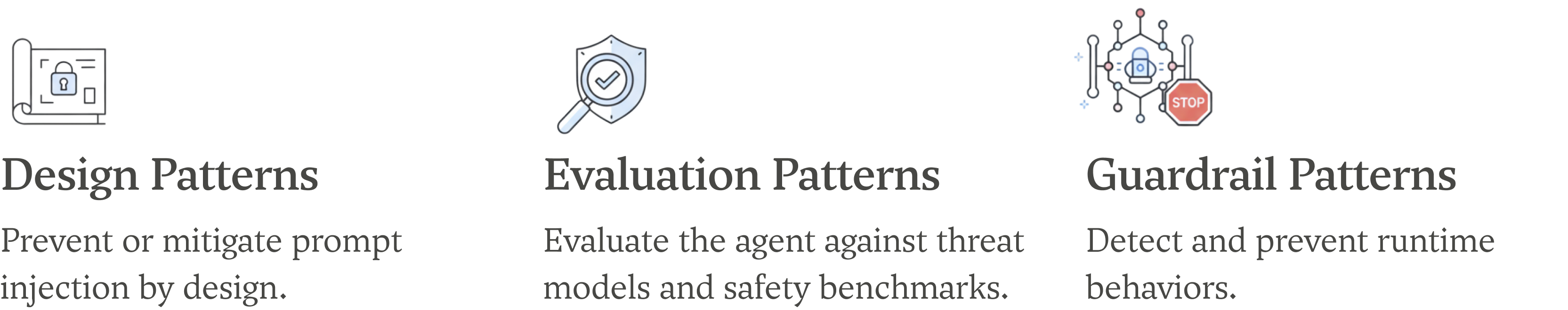 Evaluation Patterns: Proactively test the agent against threat models to find weaknesses.